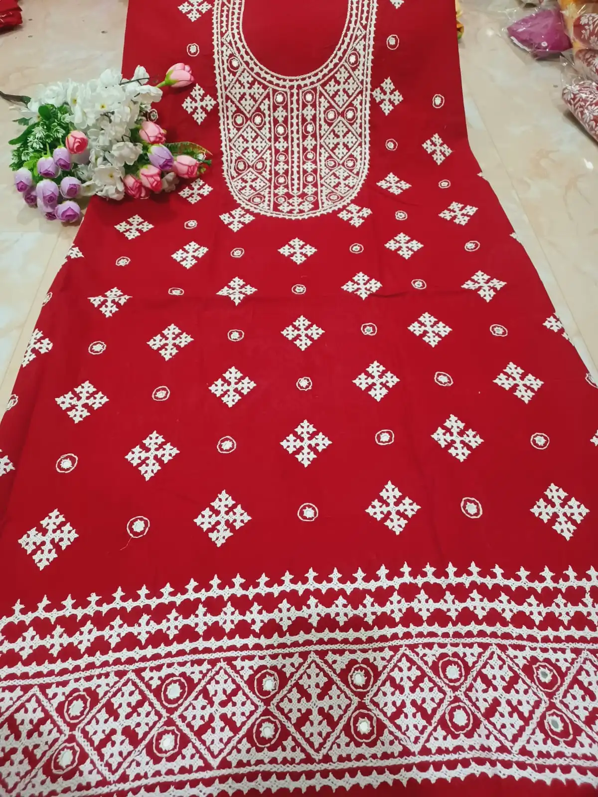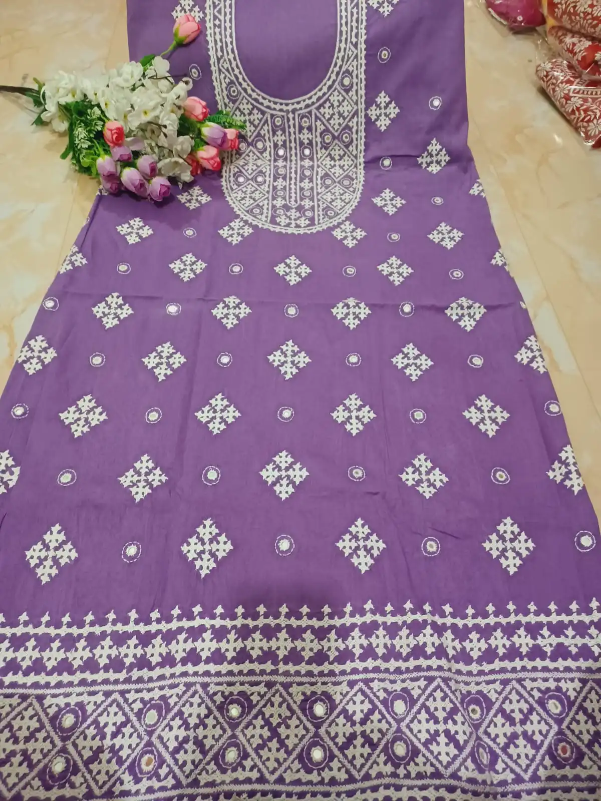 হাতের কাজের থ্রি-পিস, ফেব্রিক্স খাঁটি কটন-1.3
